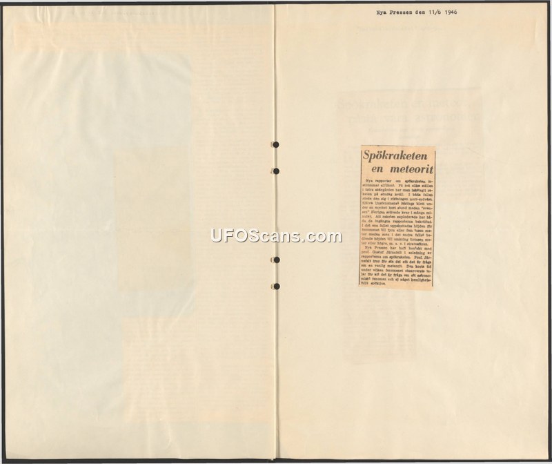 A 1946 newspaper report details sightings of a 'ghost rocket' in Sweden. Professor Gustaf Järnefelt concludes the phenomenon was likely a meteorite.