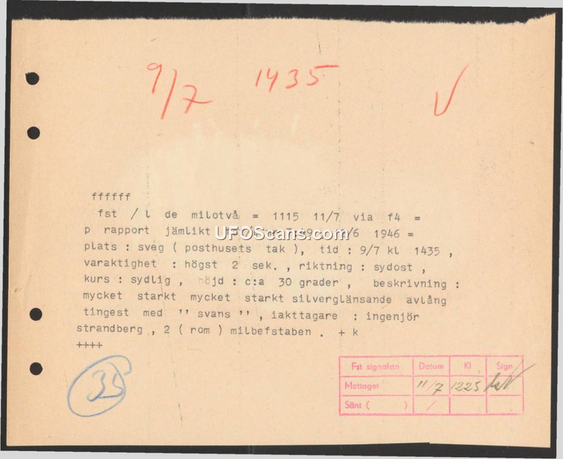 Sighting Report — Sveg, Sweden, July 9, 1946