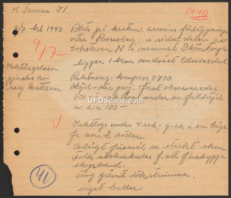 Sighting Report - Rosersberg, Sweden, July 9, 1971