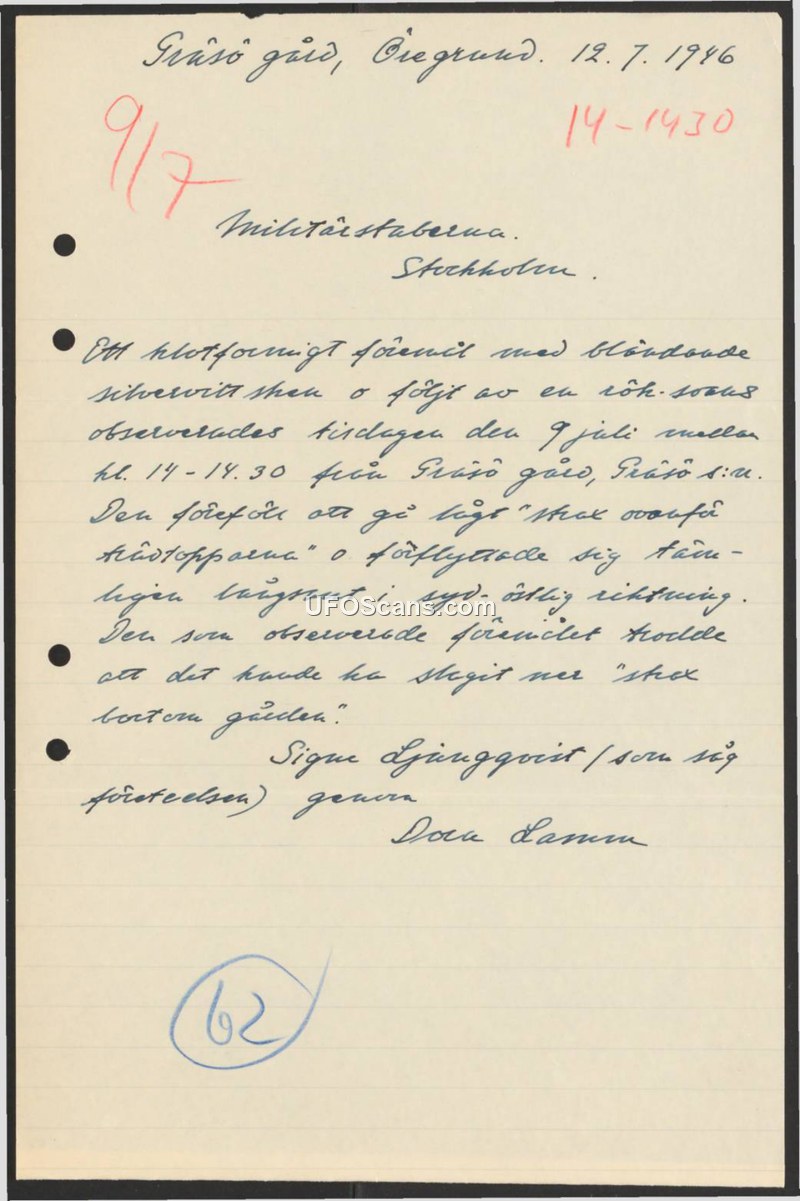Sighting Report — Gräsö gård, Sweden, July 9, 1946