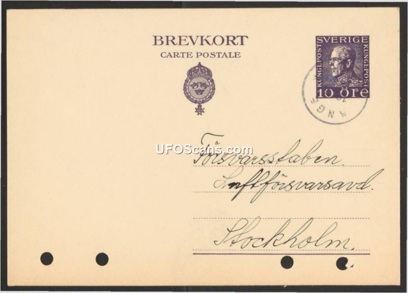 This is a postal card addressed to the Swedish Defence Staff's Air Defence Department. It contains no message or date, serving only as a piece of correspondence.
