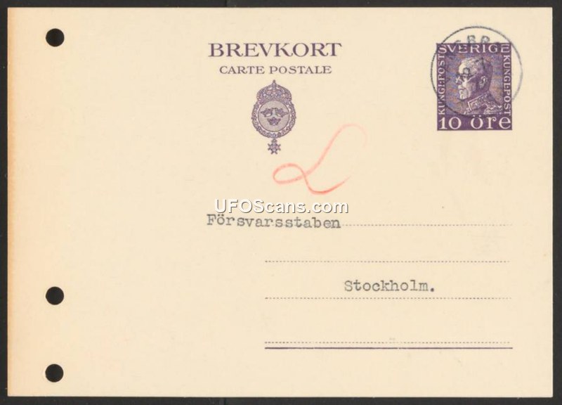 Postcard addressed to Försvarsstaben, Stockholm