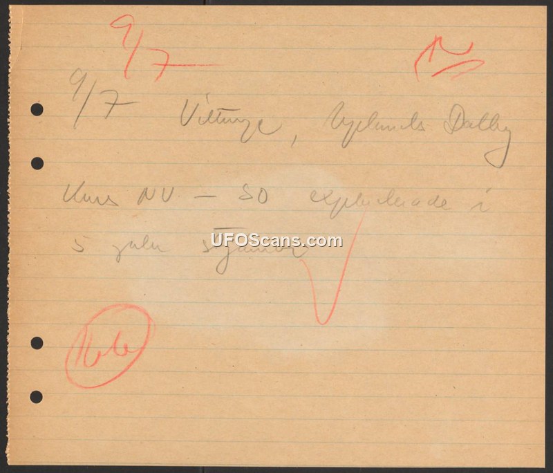 A handwritten note records a sighting of an unidentified object in Vittunge, Upland, on September 7. The report mentions an association with five stars.