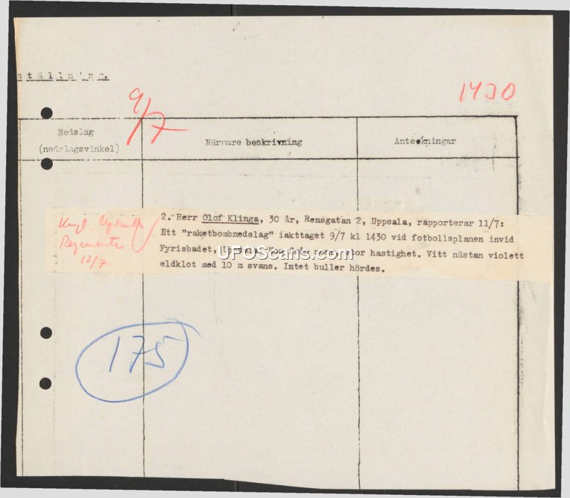Sighting Report: Raketbombnedslag, Uppsala, 9 July