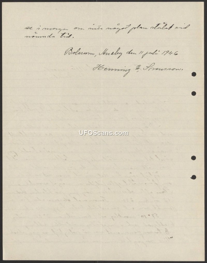 A short, handwritten note from Sweden dated July 11, 1946, referencing a plane and a specific time. The document provides no further context regarding the nature of the aircraft or the incident.