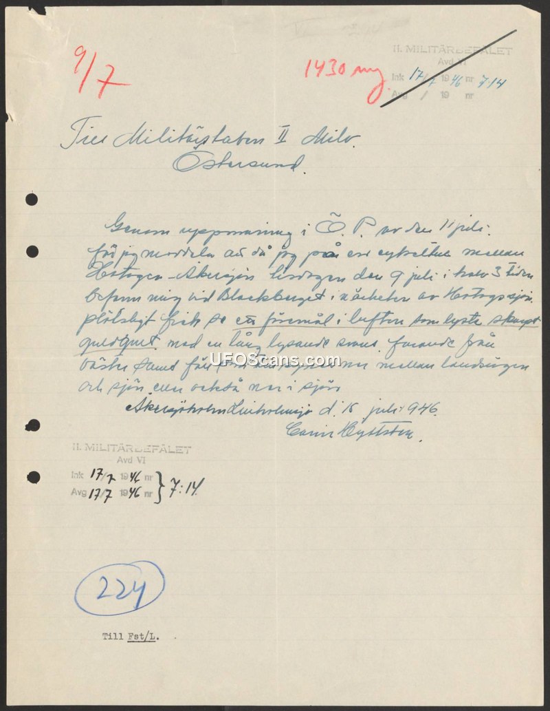 Sighting Report — Åkersjön, Sweden, July 9, 1946