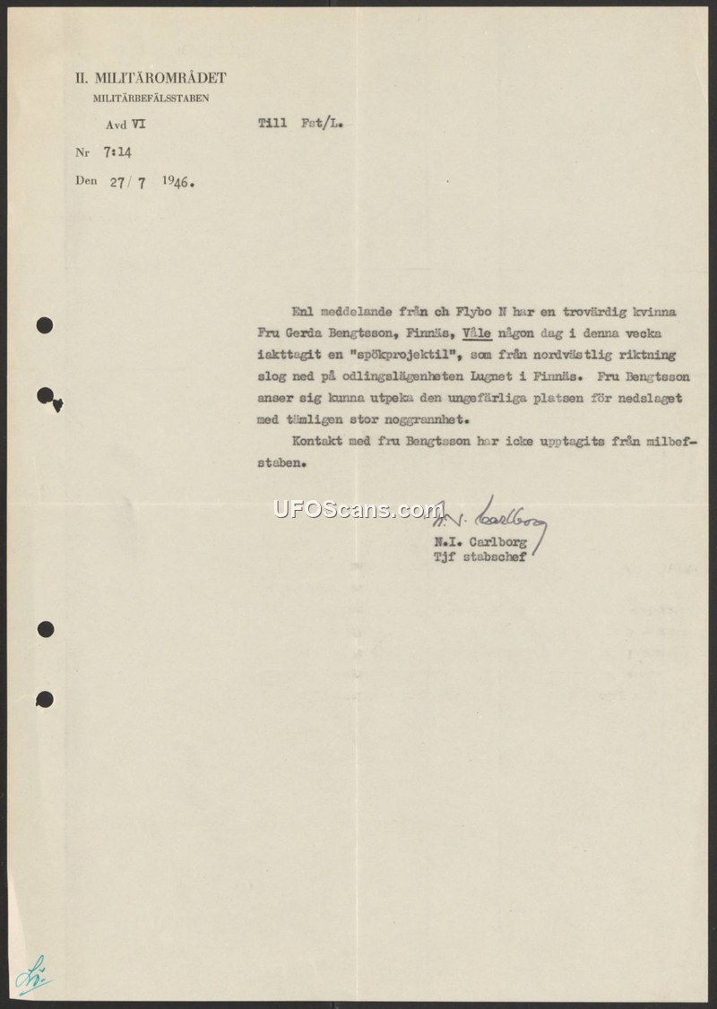 Military District Report Nr 7:14 — Sighting of a 'Ghost Projectile' in Finnäs