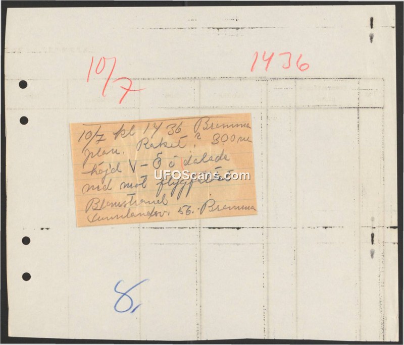10/7 kl 1436 Bromma plan. Raket, 300m höjd V-Ö dalade ned mot flygfältet