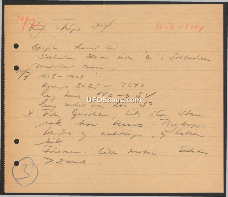 A handwritten field report documenting a sighting at Solbacken. The document contains numerical data and references to the years 1858-1901.