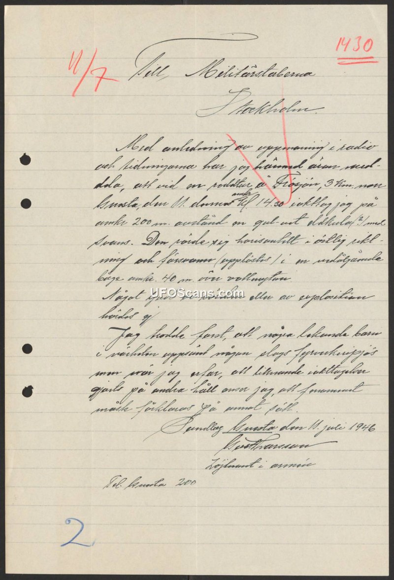 Sighting Report — Frösjön, Sweden, July 11, 1946