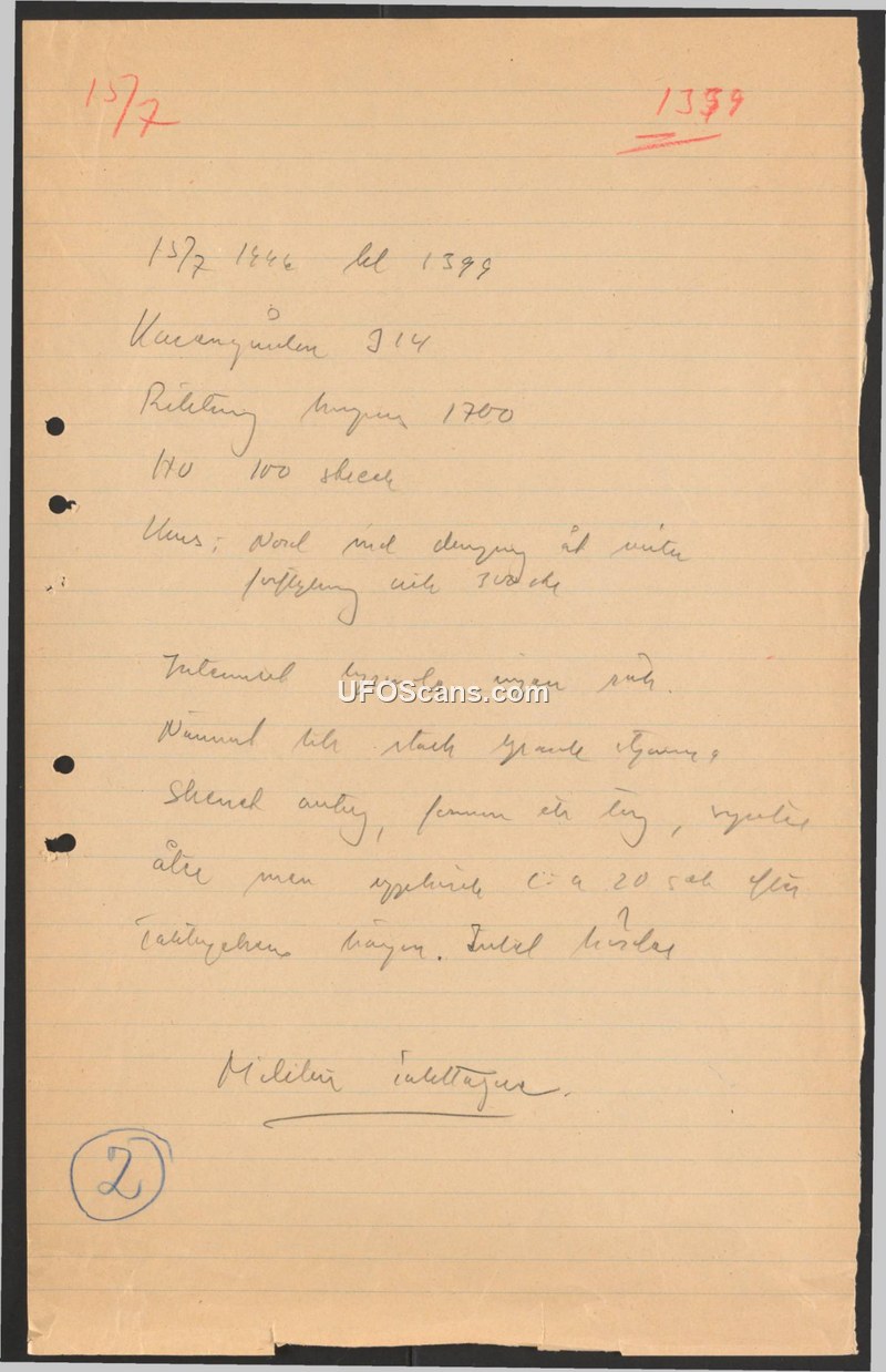A 1946 military intelligence report documenting a 20-second observation of an object moving north at high altitude.