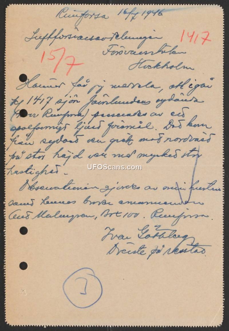 Sighting Report - Stockholm, 1946