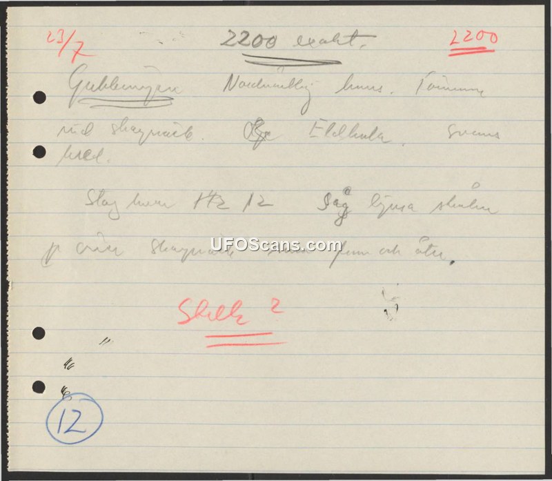 A handwritten note recording a sighting of a light at 22:00 on July 23rd at a location identified as Gubben.