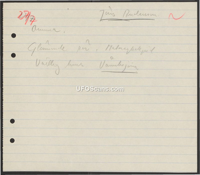 The document is a single page of handwritten notes on lined paper. It contains a date written in red ink, '27/7', and several lines of text in Danish. The text mentions 'Gleminde' and 'Vamhoj'. The content is sparse and does not provide a narrative or context for these locations or the date.