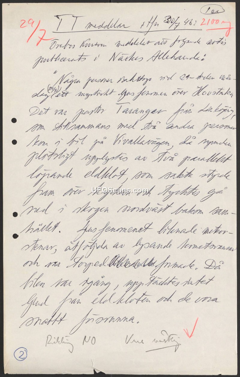 TT Report on Sighting in Närke Allehanda