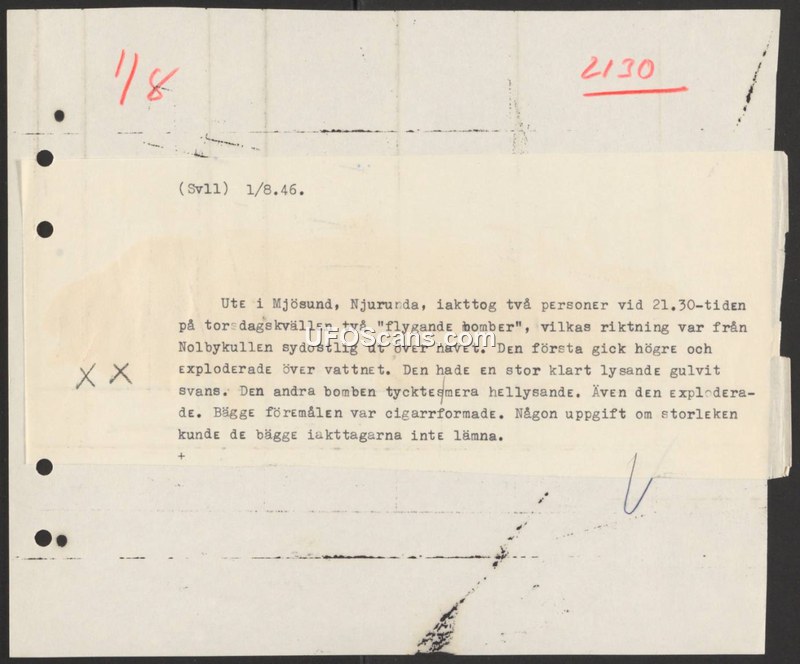 Sighting Report: Mjösund, Njurunda, August 1, 1946