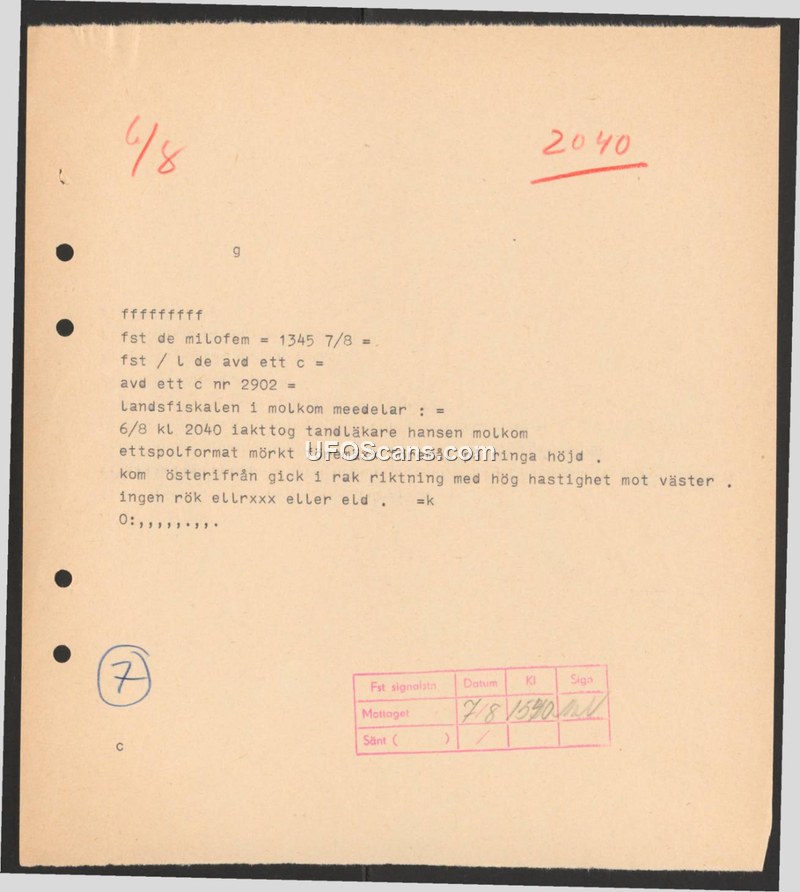 Sighting Report — Molkom, Sweden, August 6