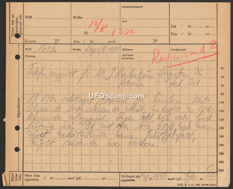 Telephone Report - Sighting in Arvika