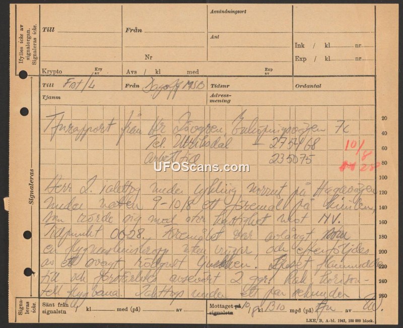Sighting Report from Mr. Jögren, August 10, 1945
