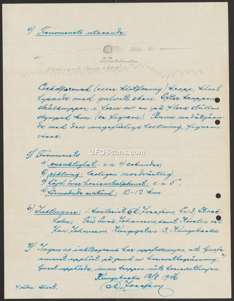Sighting Report — Kungsbacka, Sweden, 1946