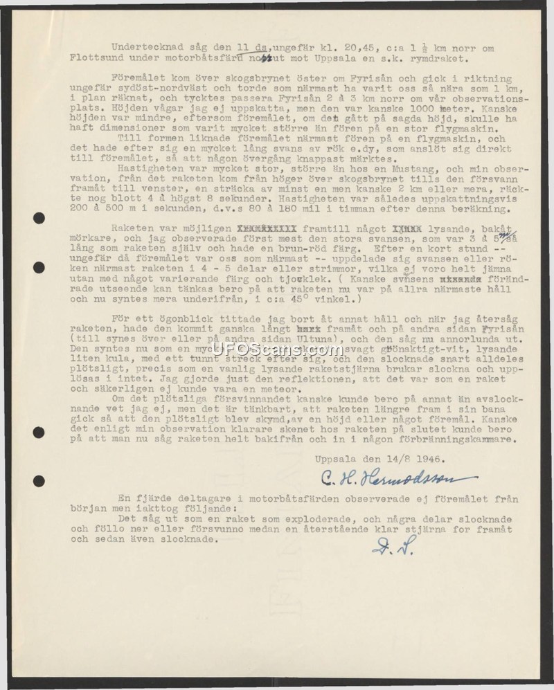 Sighting Report of a 'Rymdraket' (Space Rocket) near Uppsala, August 11, 1946