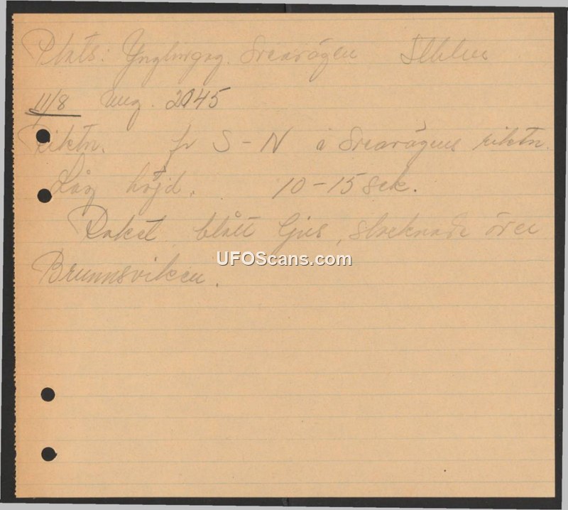 Sighting Report — Sveavägen, Stockholm, August 11, 1945