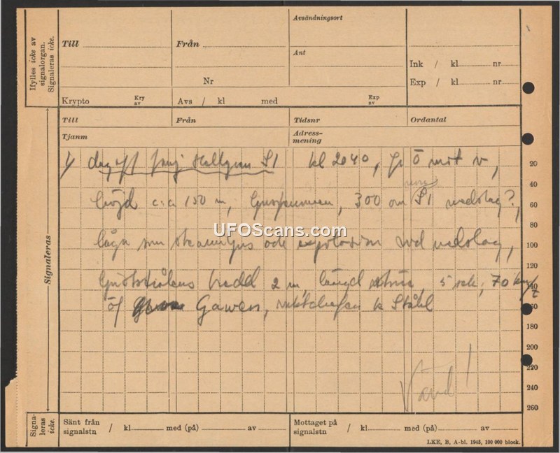Sighting Report - Sweden, 1945
