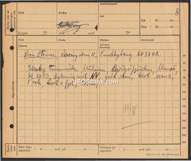 Sighting Report — Ekeby, Sweden, August 11