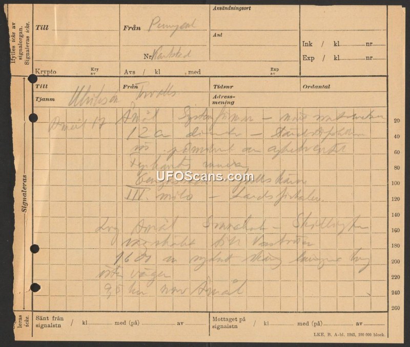 A handwritten 1945 field report from Sweden concerning the Amål area and the Third Military District. The document is partially illegible but relates to regional observations.