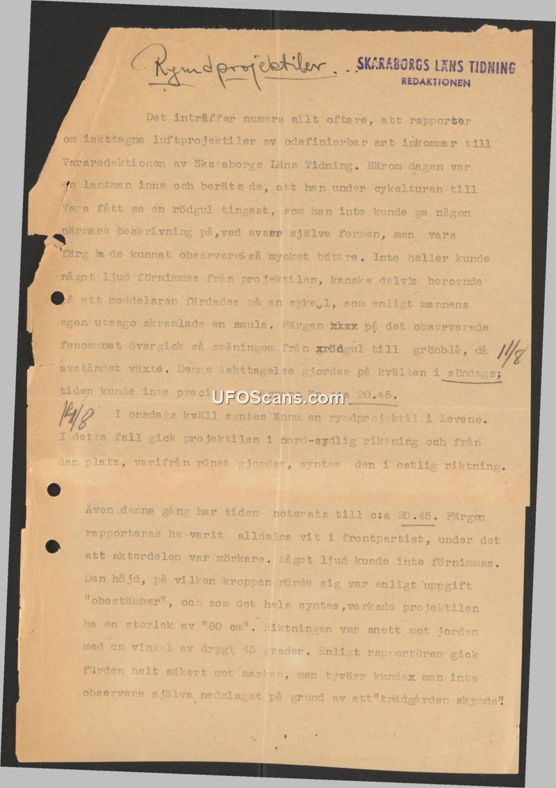 Rymdprojektiler (Space Projectiles) — Skaraborgs Läns Tidning