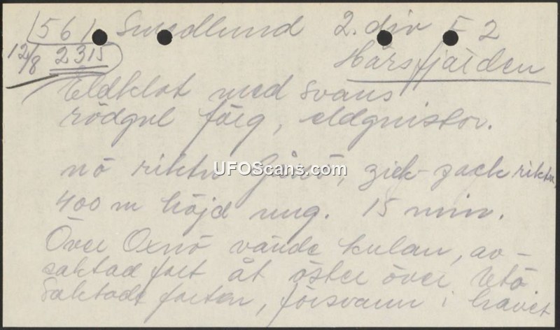 A report of a fireball sighting near Hårsfjärden on August 12th at 23:15. The object displayed a zigzag flight path and disappeared into the sea after 15 minutes.