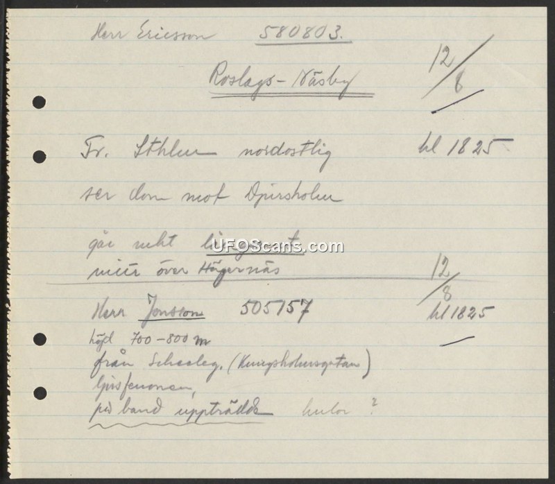 Sighting Report - Roslags-Näsby, August 12, 1958