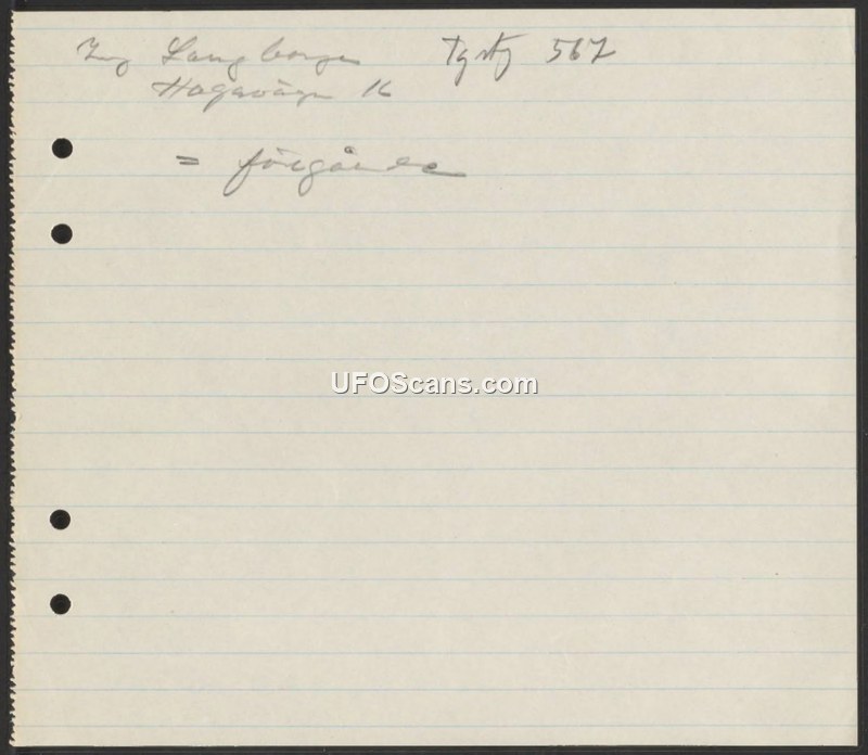 A handwritten note referencing an individual named Langborg at Hagavägen 16, marked with the number 567 and the Swedish term for 'preceding'.