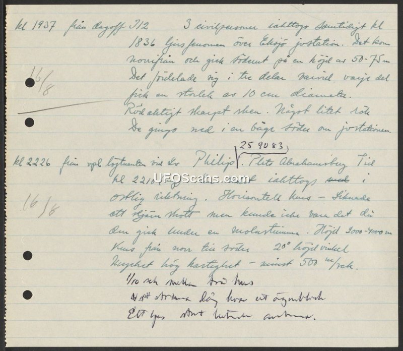 Sighting Reports: Eksjö and Philips, 1950s