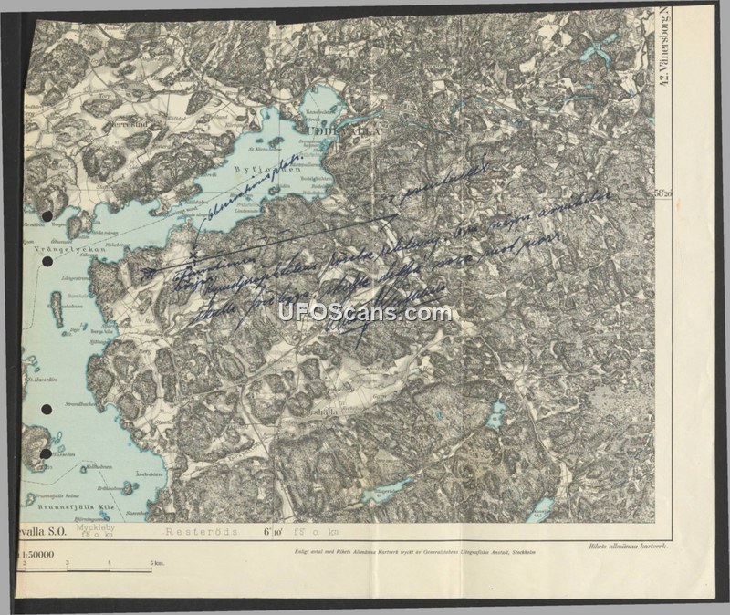 This document is a topographical map of the Uddevalla region in Sweden, produced by Rikets allmänna kartverk and printed by Generalstabens Litografiska Anstalt. The map provides detailed geographic information, including terrain features, water bodies, and place names such as Byfjorden and Forshälla. While the document contains handwritten annotations in Swedish, these markings are largely illegible and do not provide clear context regarding a specific event or incident. The map serves as a geographic reference for the area.