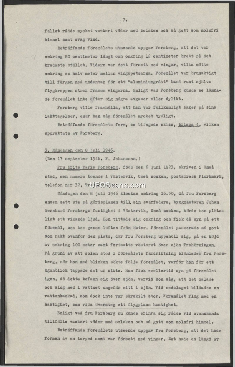 Sighting Report: Brita Maria Forsberg, 8 July 1946