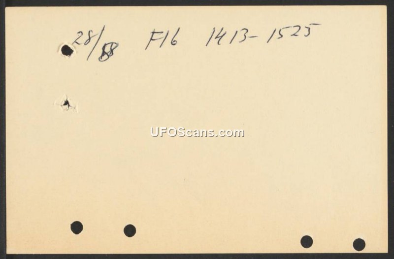 The document is a single-page reference card containing handwritten notations. The primary text visible is '28/8 F16 1413-1525'. The document contains no narrative text, context, or descriptive information regarding its purpose or origin. It appears to be a filing or index card used for administrative or archival tracking.