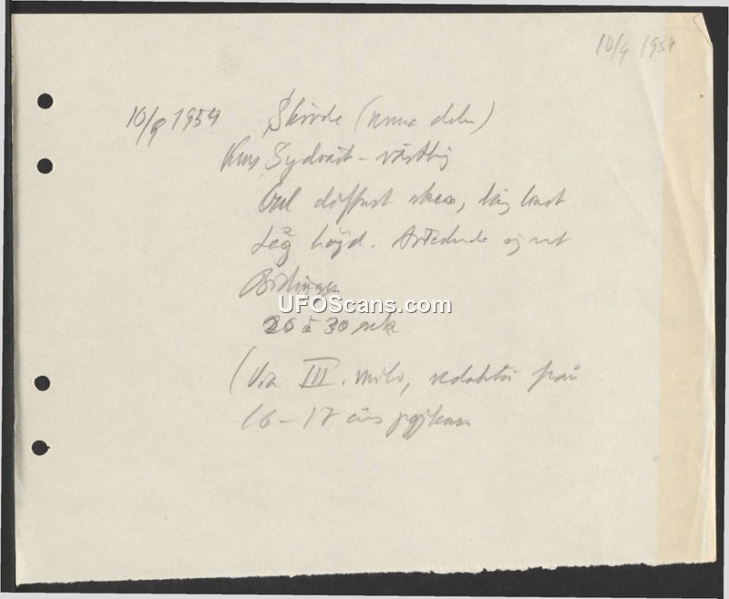 Sighting Report - Skövde, Sweden, 1954-09-10