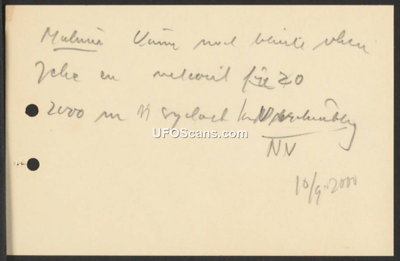 This document is a brief, handwritten note in Norwegian dated September 10, 2000. The text appears to be a fragmentary record of an observation or sighting. It mentions an altitude of 2000 meters. The note is signed with the initials 'NN'. Due to the handwriting style and the brevity of the content, the full context of the observation remains unclear.