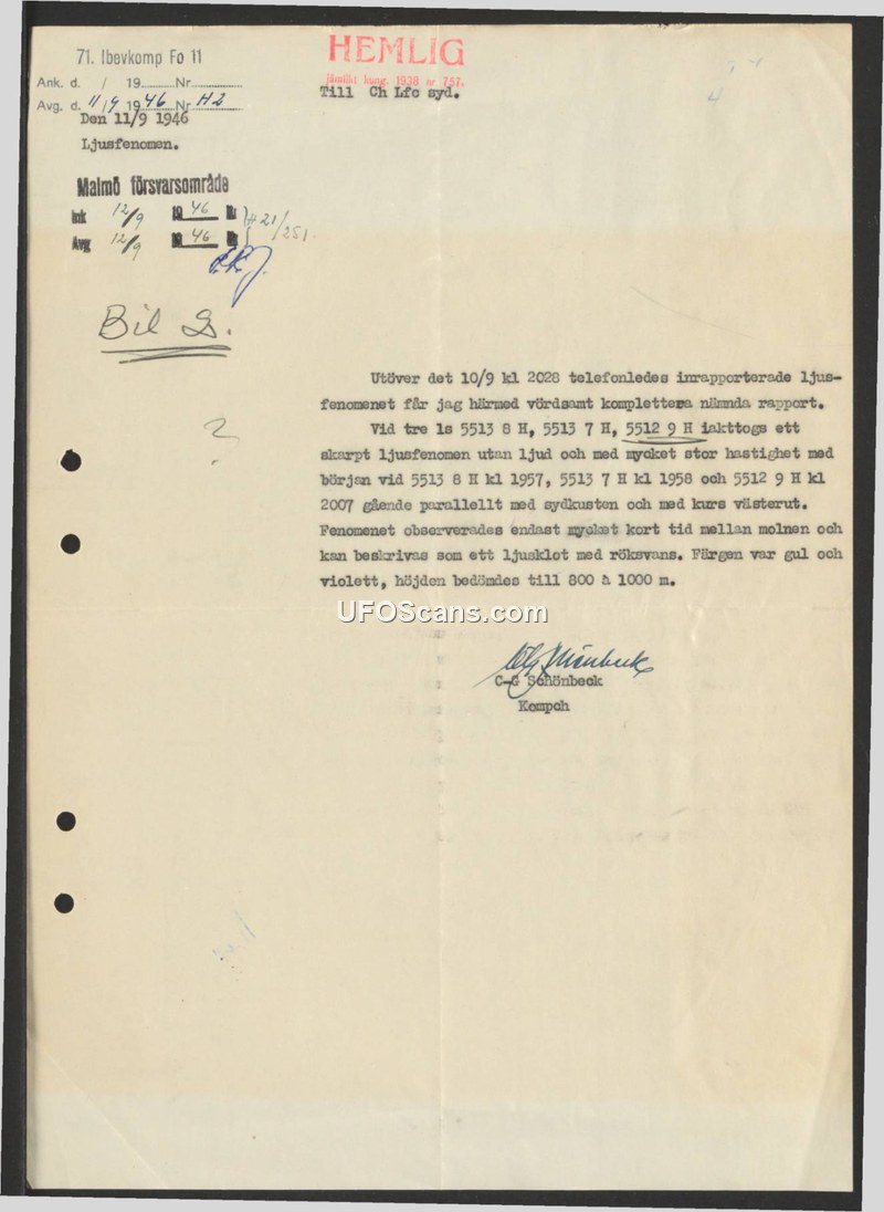 Ljusfenomen (Light Phenomenon) Report — Malmö, Sweden, September 1946