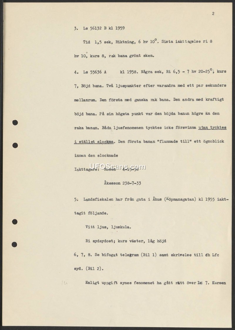 Sighting Incident Reports — Sweden, 1958-1959