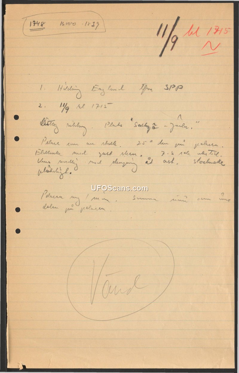 Sighting Report - England, September 1, 1949