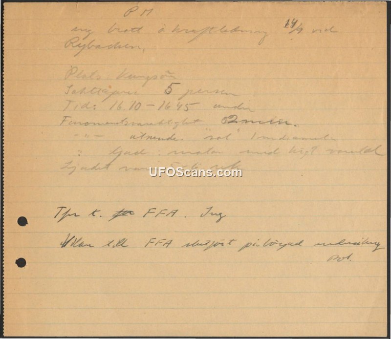 A power line break occurred at Rybachen, Kungsön, observed by five people. The phenomenon lasted 32 minutes and was accompanied by a loud motor-like sound lasting 5-6 minutes.