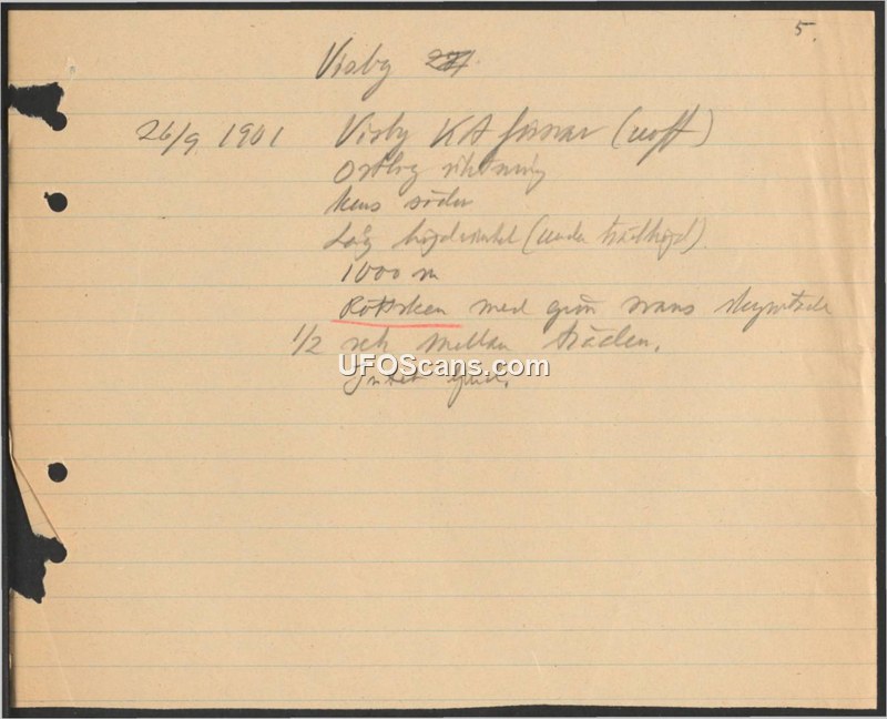 The document records a sighting at Viaby on September 26, 1901, involving an object at an altitude of 1000 meters, noting that there was no sound.