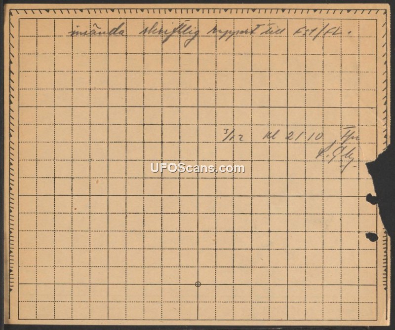 The document is a brief, handwritten note on grid paper. It indicates the submission of a written report to 'Fst/Fl' (likely the Swedish Armed Forces Staff/Air Force Staff). The note includes a date of 3/2 and a time of 21:10, along with a signature or initials that appear to read 'R. G-ly'. No further details regarding the nature of the report or the incident are provided.