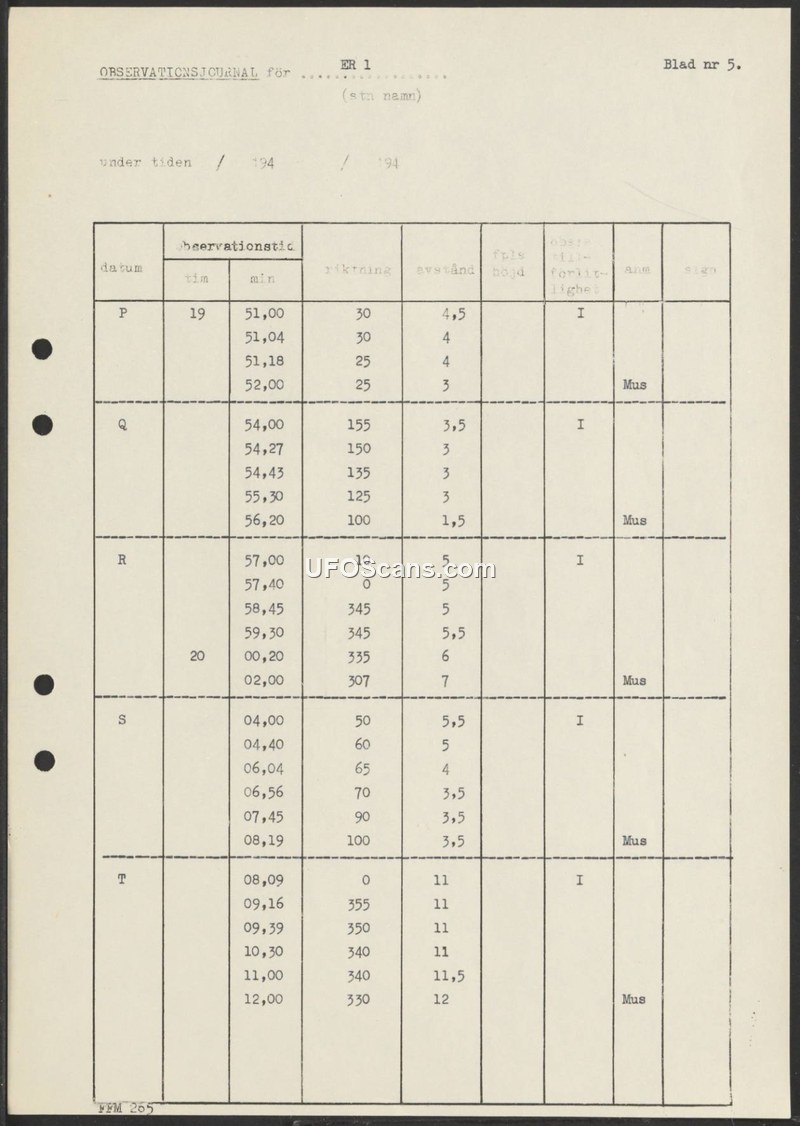 Observationsjournal for ER 1, Blad nr 5