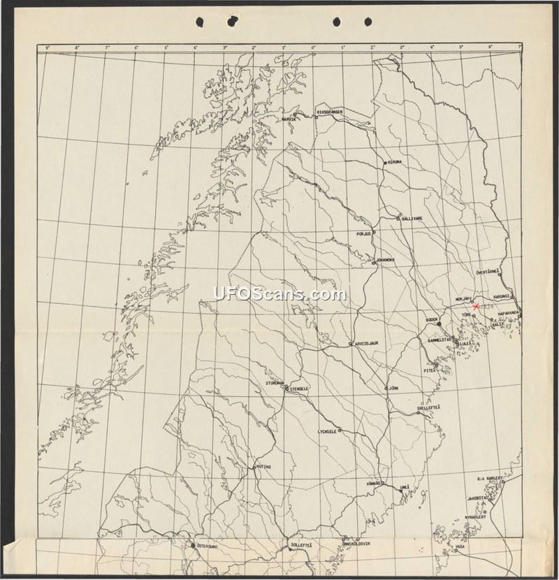 The document is a geographic map depicting the northern region of Sweden and its border areas. The map includes various towns and locations such as Riksgränsen, Kiruna, Gällivare, Porjus, Jokkmokk, Arvidsjaur, Boden, Luleå, Piteå, Skellefteå, Lycksele, Vännäs, Umeå, Östersund, Sollefteå, and Örnsköldsvik. It also shows locations across the border in Finland and Norway, including Narvik, Haparanda, and Jakobstad. A handwritten mark resembling an 'X' with the number '1930' is visible near the Morjärv and Kalix area. The map serves as a reference for the geography of the region.
