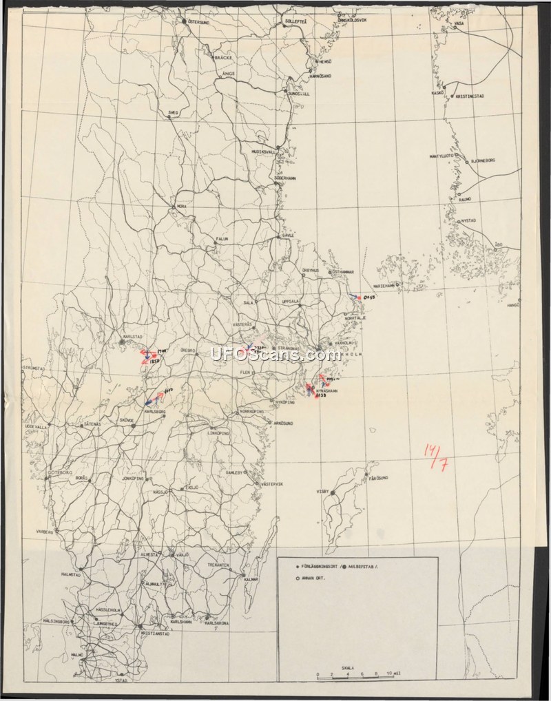 A map of Sweden annotated with handwritten times and directional arrows, dated July 14th, indicating a series of tracked events or movements.