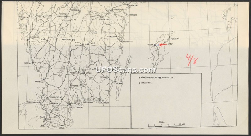 A map of Sweden identifying military and civilian locations. It contains handwritten annotations including '2/8' and '4/8'.