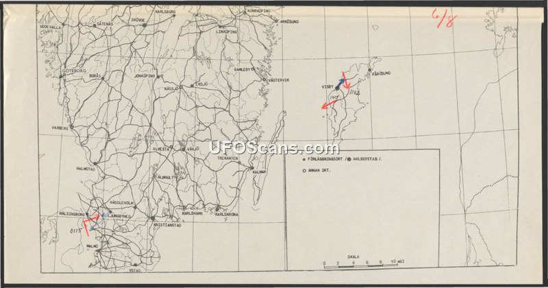 A map of Sweden with hand-drawn flight path annotations and timestamps near Malmö and Visby. It serves as a visual record of movement or activity at specific locations.